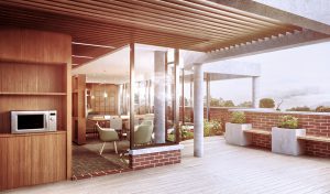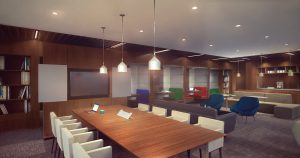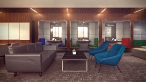 El Reto: Contando con un espacio determinado y partiendo en la realización y desarrollo visual como parte del anteproyecto y la propuesta presentada teníamos como reto comunicar las sensaciones y la nueva forma de abordar el espacio por parte de la comunidad universitaria, representando los espacios con materiales y muebles personalizados específicamente para el proyecto.